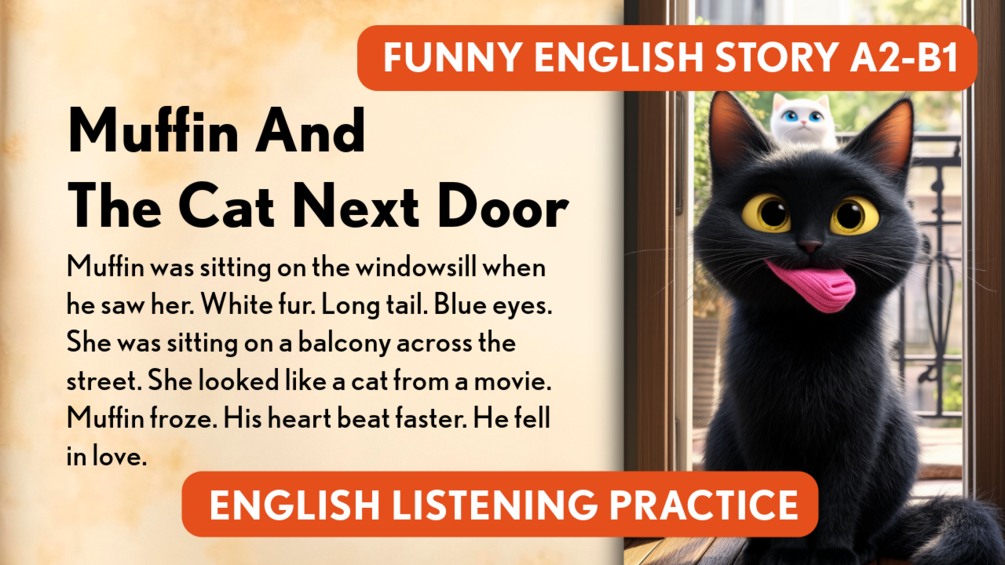 English Worksheets (PDF + Audio) - A2/B1: Muffin and the Cat Next Door