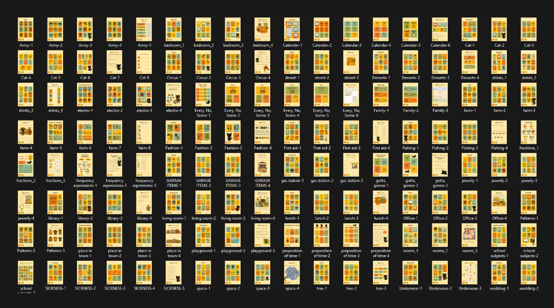 This complete set of 150 illustrated learning cards combines vocabulary, grammar, and fun activities in one organized pack. Whether youβre a teacher, student, or parent, youβll have ready-to-use materials at your fingertips.